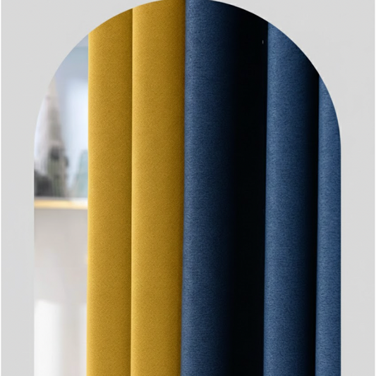 Rideau coton et lin insonorisé bleu marine- jaune | Silencio II